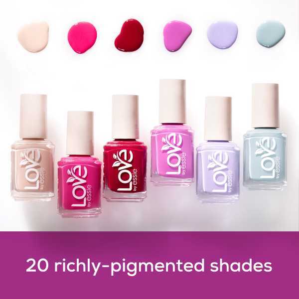 an 85 plantbased allinone base top coat use as a base coat before painting love by essie nail color and then use as a top coat for color sealing and shine