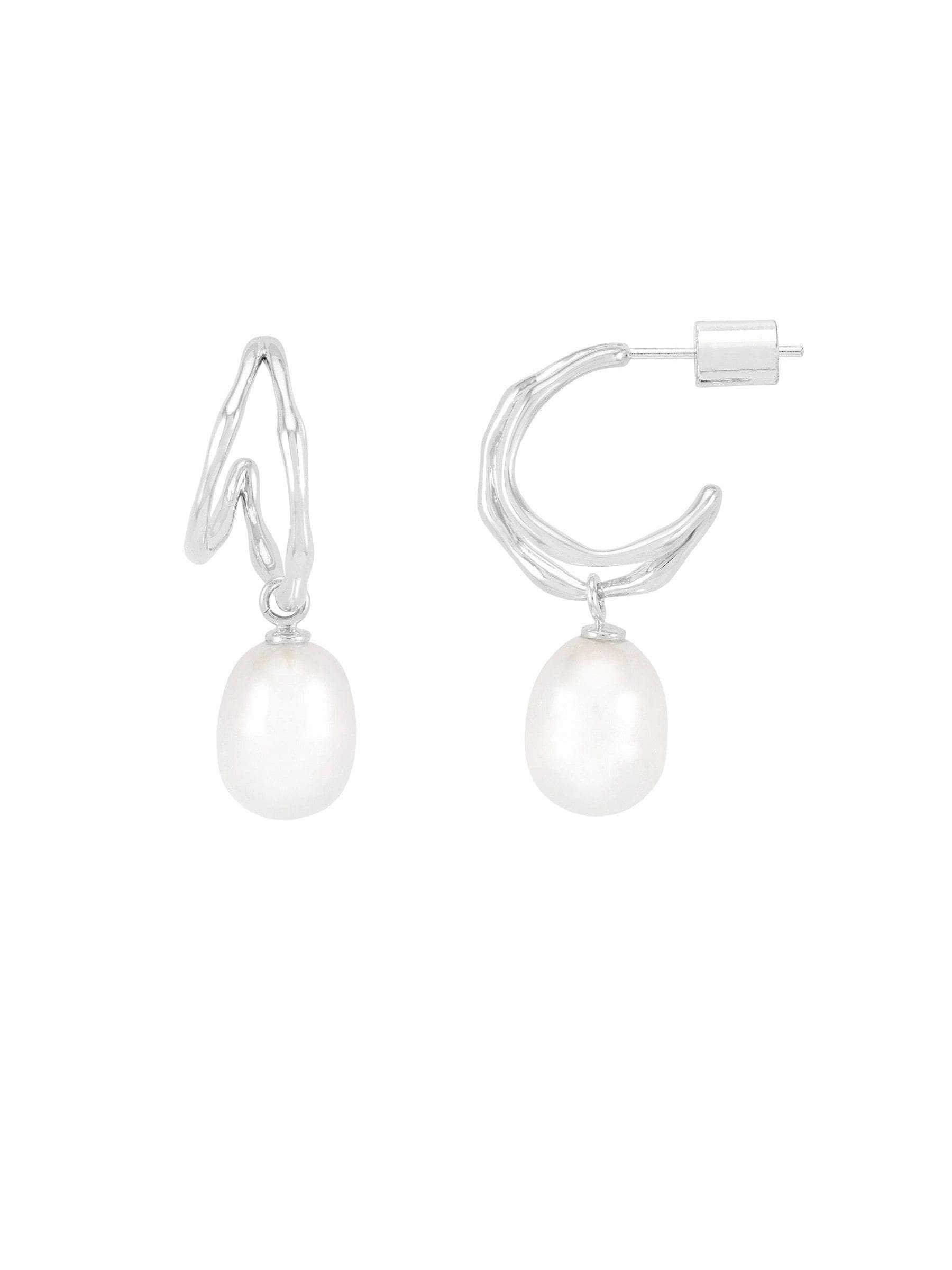 Elevate your style with the Estella Bartlett Waterproof Silver Molton Pearl Double Hoop Earrings. Featuring fluid, molten gold curves and luminous pearls, these hoops blend elegance with durability. Sweat-proof, swim-proof, and tarnish-resistant, they’re perfect for any occasion—effortlessly chic from day to night. Timeless luxury that lasts.