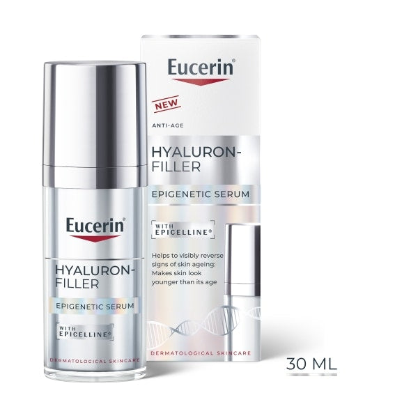 eucerin hyaluronfiller epigenetic serum is our breakthrough antiage innovation that reactivates skins youth genes at the root and allows skin cells to act younger to reverse 10 signs of ageing