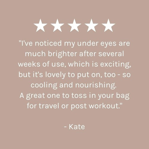 Two molecular weights of natural Hyaluronic Acid provide deep hydration, brightening Tuberose Stem Cells enhance skin uniformity to help reduce the appearance of dark circles and organic Cucumber Water cools, refreshes and soothes tired eyes.