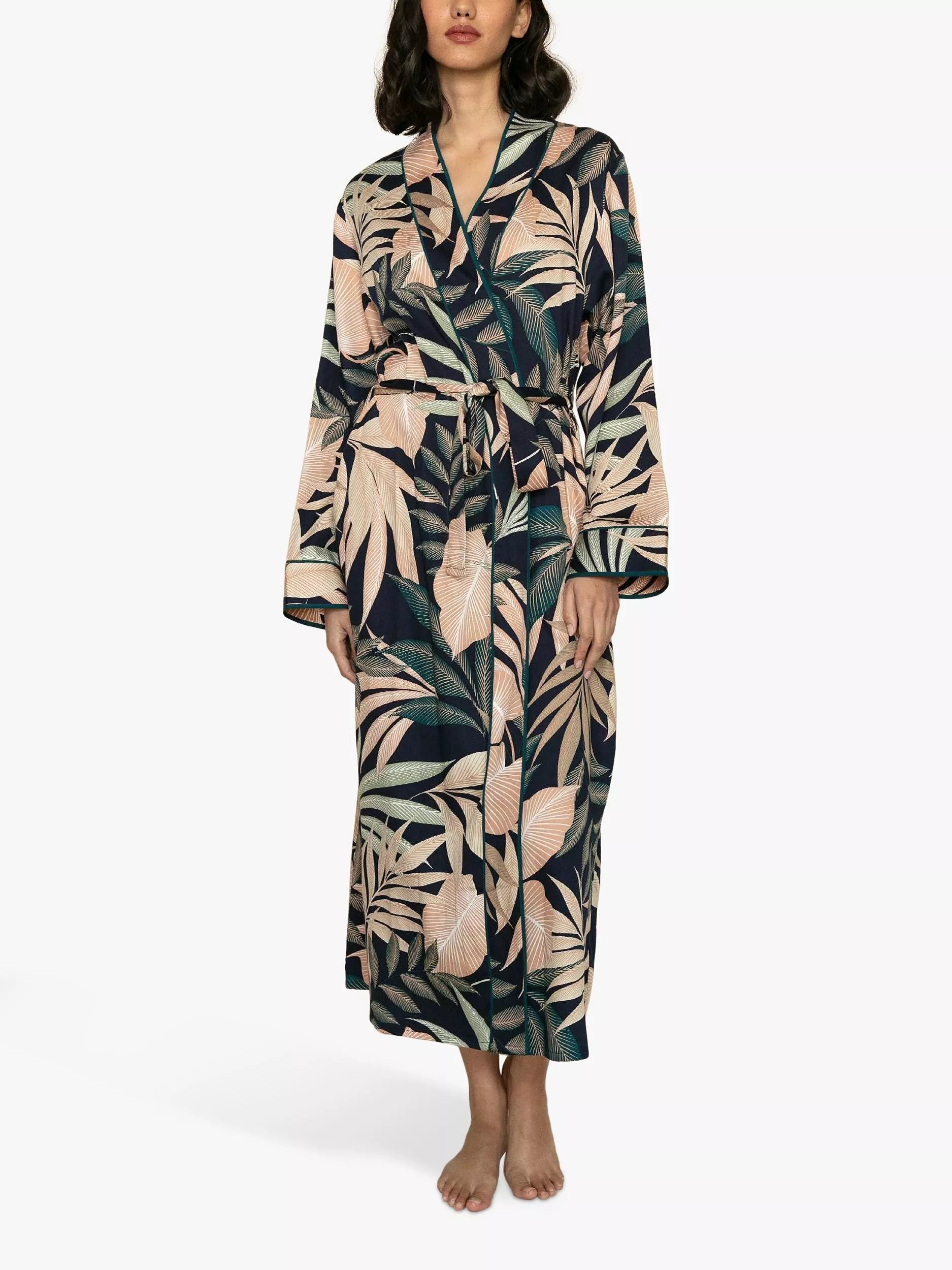 Made from a comfortable cotton blend that you won't be able to wait to slip into, this contrast piped dressing gown from Fable & Eve showcases your love for the great outdoors with its print and comes with a self-tie blet.
