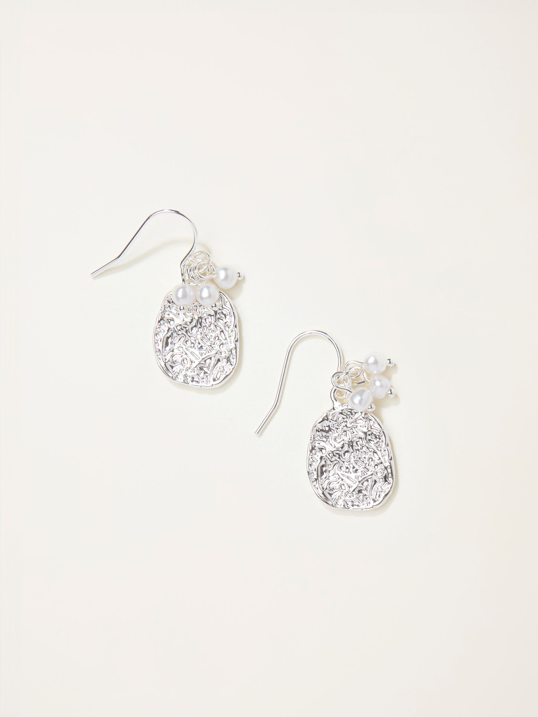 FatFace Silver Tone Hammered Pearl Drop Earrings