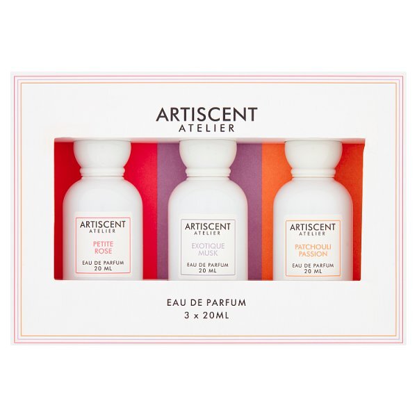artiscent fragrances are dreamed up in paris home of prestige perfumery where perfumers are given carte blanche to translate their vision into unique and exciting scents1 x petite rose eau de parfum 20ml 1 x exotique musk eau de parfum 20ml 1 x patchouli passion eau de parfum 20ml