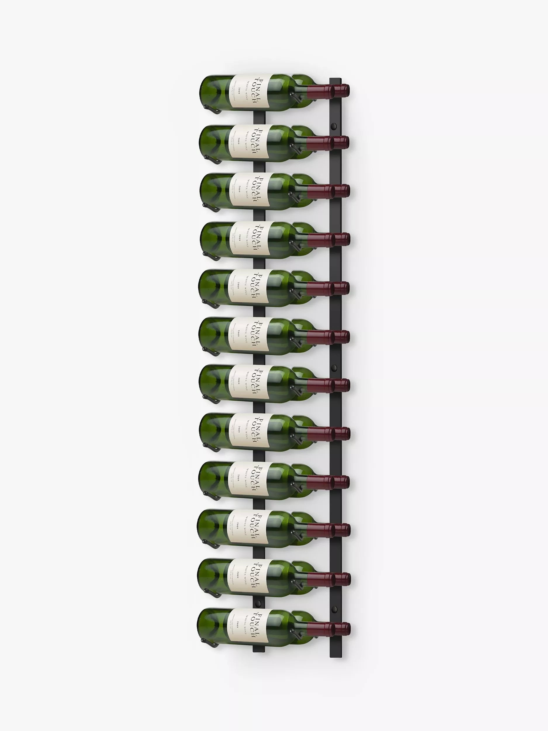 Mount up to 24 bottles on your wall in the kitchen, dining room or home bar with this wrought iron wine rack. The slim profile design is space-saving and suits any decor. The sturdy wrought iron construction supports the bottles firmly and is finished off with a durable black powder coating.