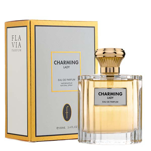 discover flavia charming lady eau de parfum 100ml a captivating blend of orange blossom bergamot orange mandarin orange leading to elegant middle notes of ylangylang turkish rose jasmine leading to elegant middle notes of tonka bean opoponax vanilla musk patchouli vetiver