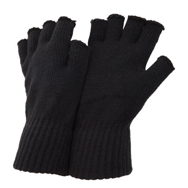 Product Information mens fingerless winter gloves protects hands from the cold whilst allowing for optimum dexterity choice of 4 colours one size 96 acrylic 3 polyester 1 elastic machine washable