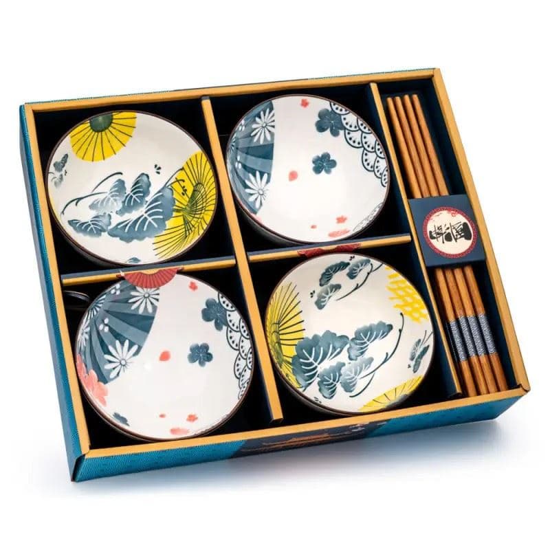 The Flower Pattern Rice Bowl & Chopstick Set combines functionality with elegance. This set includes four rice bowls adorned with a delicate floral pattern, adding a touch of charm to your dining table. Accompanying the bowls are four pairs of matching chopsticks, completing the set and providing everything you need for a delightful meal.