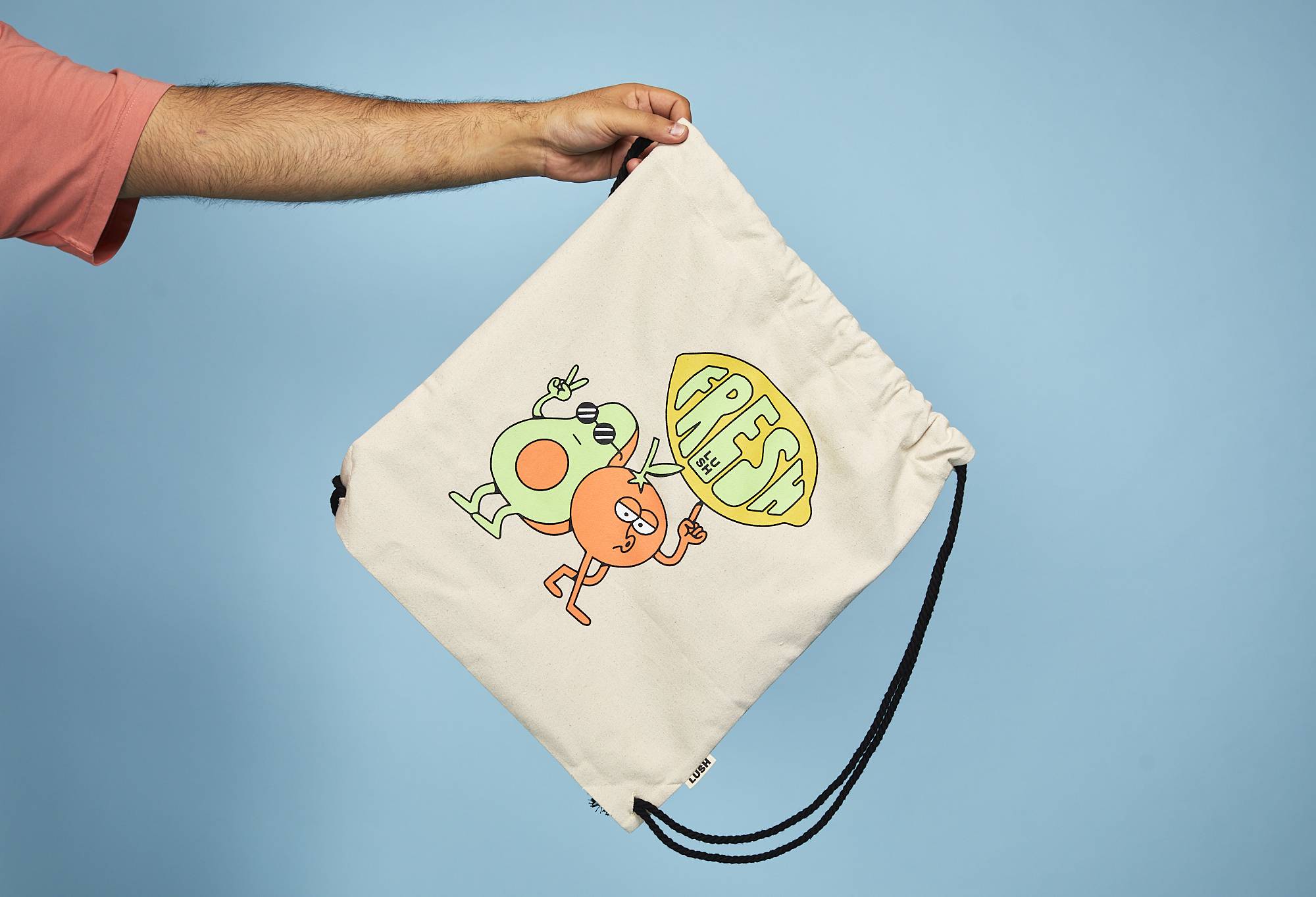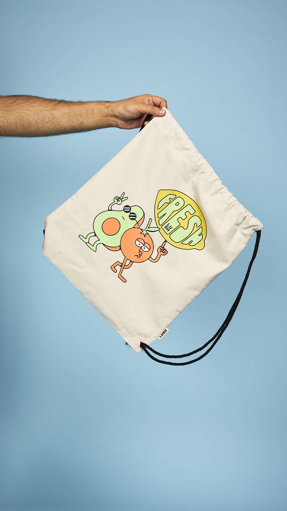 Old school style with a fun ‘n’ fresh design. With a single sided print and drawstring cord, this natural cotton bag can be worn as a backpack or over one shoulder - whatever suits your style.