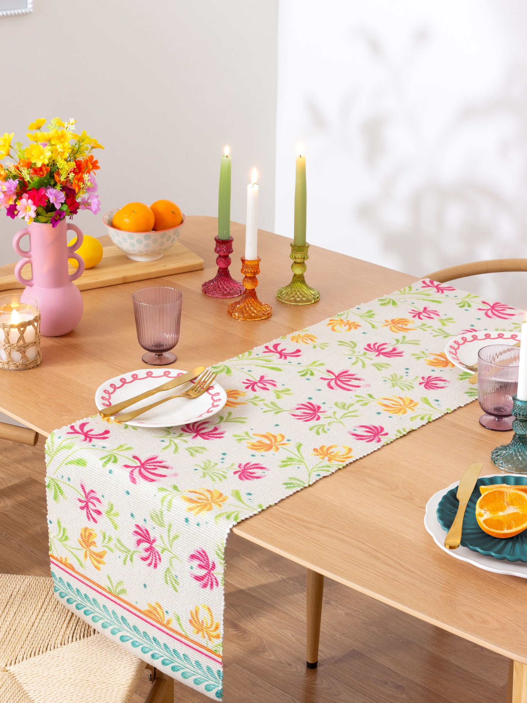 Give your table a lift with the wonderfully versatile. Honeysuckle table runner. Delicately painted in watercolour, sweetly perfumed florals grow rapidly. Set against a complementing natural background and surrounded by bright leaves, this tableware design is a match made in summer! Read More