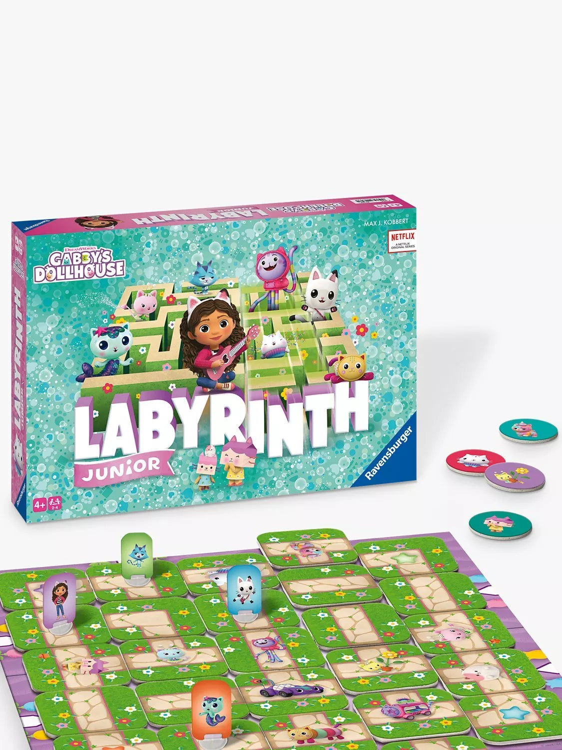 Gabby and her cat friends are hiding in the corridors of the Junior Labyrinth; who can find them? Gabby’s Dollhouse Junior Labyrinth is a search and slide game, so move the cards on the game board to create new paths that lead to the sought-after series heroes.