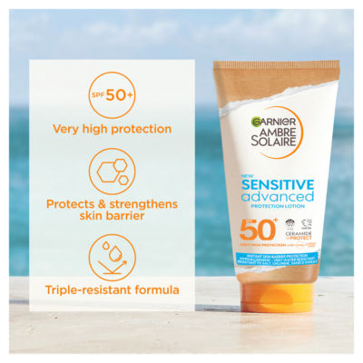 Very High Protection: Garnier Ambre Solaire Sensitive Advanced Sun Cream SPF50+ has maximum 5 star UVA protection and provides advanced UVA, UVB and Long UVA protection against sun induced skin damage and sunburn. Sensitive Skin: Garnier Sensitive Advanced has been especially developed for fair and sensitive skin. Ceramide Protect: Formula with Ceramide providing UVA & UVB protection and instant skin barrier function protection. Very Water Resistant: The cream formula is non-greasy and very water resistant and can be used on the face and body. This formula is also resistant to salt, chlorine, sweat and sand. Hypoallergenic: This sun protection cream is hypoallergenic and is tested under dermatological control. Fragrance-free. Garnier Ambre Solaire Sensitive Advanced Sun Cream SPF50+ provides very high protection against sun induced skin damage and sunburn. With Ceramide providing UVA & UVB protection and instant skin barrier function protection. The formula is developed for all skin types, including fair and sensitive skin. Non-greasy and leaves no white marks. With a nude skin feel finish, this formula blends within seconds on skin. This sun protection cream is hypoallergenic and is tested under dermatological control. Very water resistant, resistant to salt, chlorine, sweat and sand. Fragrance free. The formula conforms 100% to European recommendations for protection against the harmful effects of UVA and UVB rays. This suncream offers advanced protection against immediate sun induced skin damage, caused by UVB rays, as well as protection from long-term damage and premature skin ageing caused by UVA rays. Garnier suncare research is recognised by the British Skin Foundation.