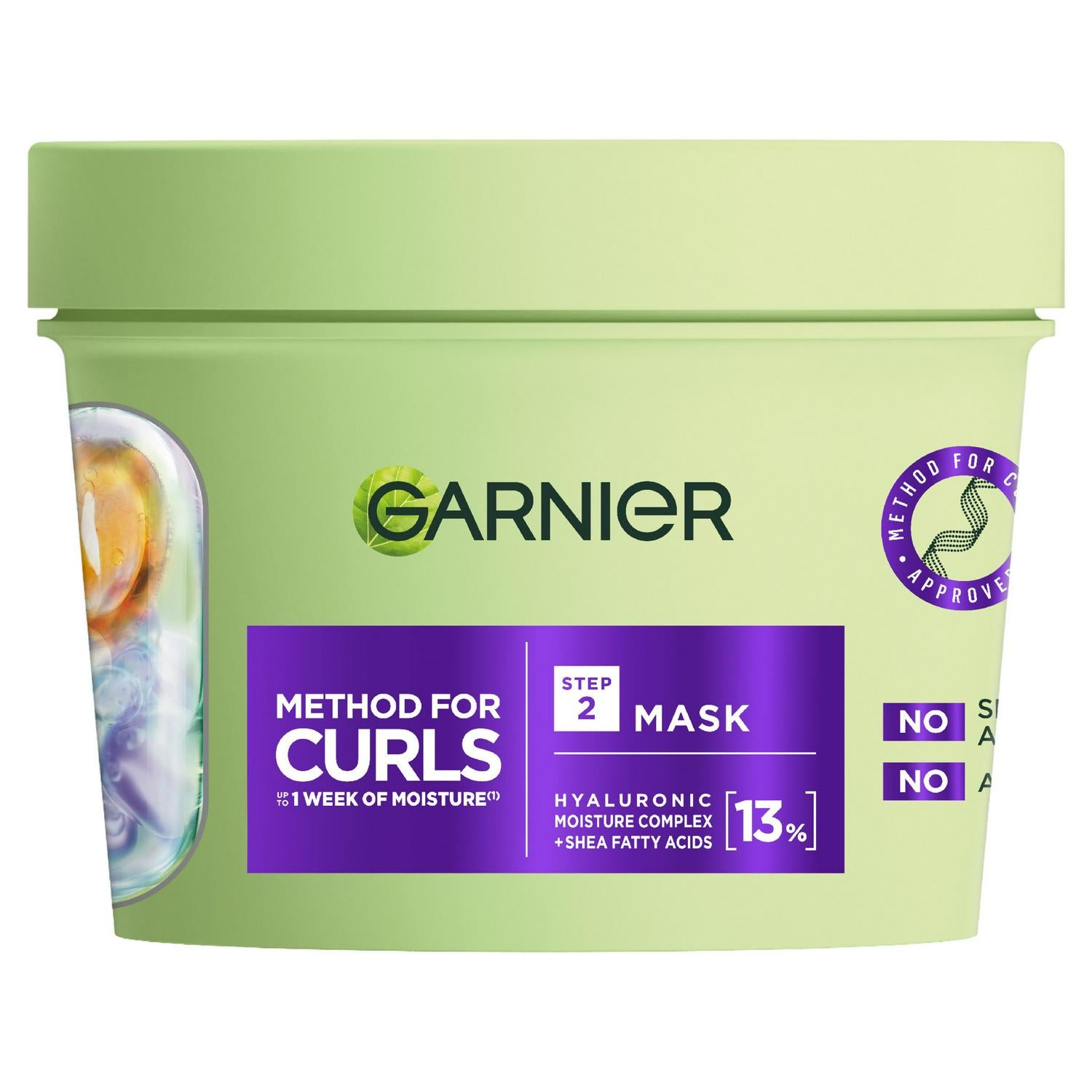 HAIR FACT: Curly and coily hair, with its fragile spiral structure, leaks moisture at every twist. STEP 2 Garnier Method For Curls Hair Mask helps curls feel hydrated for up to 7 days*. The formula is powered by a 13% Hyaluronic Moisture Complex and Shea Fatty Acids. This hair mask leaves the hair feeling hydrated without weighing it down, for improved smoothness and definition. Curls are visibly transformed from the very first use, as this intensive mask provides long-lasting moisture and beautiful definition. Designed and tested on all curl types, including type 4 curls & coils. Formulated with no silicones for a natural feel, no artificial colourants and has a vegan formula*. Approved by Cruelty Free International.