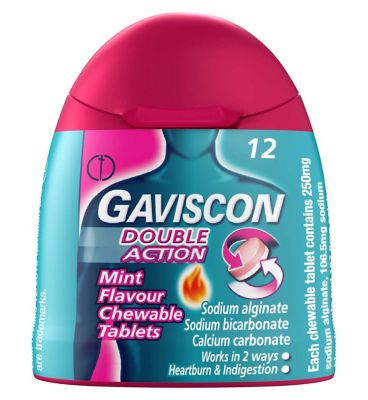 Gaviscon Double Action tablets provide effective relief from the discomfort of heartburn and indigestion. These mint-flavoured tablets work rapidly using a dual mechanism to combat acid-related symptoms. The convenient chewable format allows for immediate use when symptoms arise throughout the day or night.