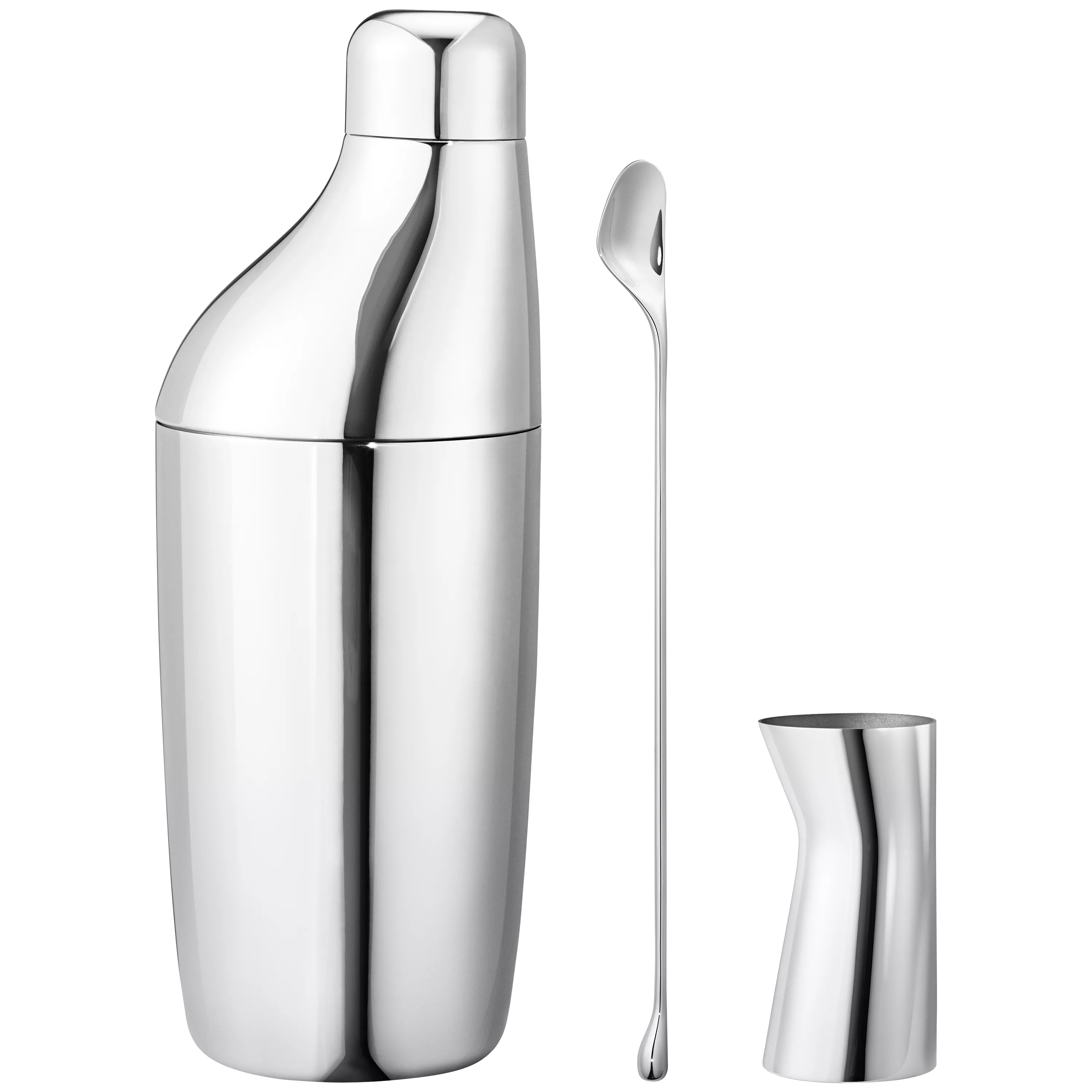 The Sky collection from leading Georg Jensen designer Aurélien Barbry is focused on touch, feel and looks. Casual yet sophisticated, each item is a tactile delight in the hand. This Nordic-inspired design is a unique and functional take on the classic cocktail shaker, jigger and stirrer. The jigger is compact yet sculptural with subtle detail. The shaker's asymmetric line gives you a perfect grip while its profile adds a charming aesthetic to any kitchen or home bar. The long-handled stirring spoon is a re-imagining of a classic design.