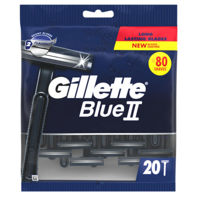 Product InformationGillette BlueII men's disposable razor has 2 long lasting blades with chromium coating, so you don’t have to change your razor as often. The razor features a fixed head.