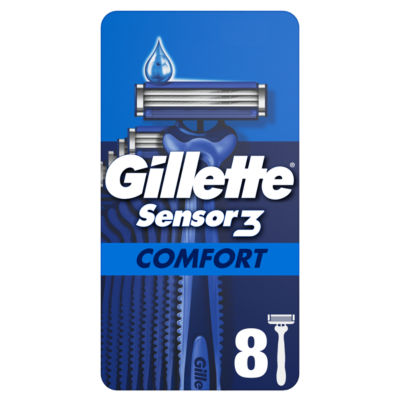 Product InformationGillette Sensor3 is the world’s number one most sold 3-bladed disposable razor. These shaving razors for men are equipped with skin-sensing blades and water-activated ComfortGel™ that give you a closer and smoother shave*. Enjoy the easy-rinse blades for 2x better rinsing*. The disposable razors with Lubrastrip are designed with a flexible head that adjusts to the contours of your face, making shaving hard-to-reach areas easy. You can now get up to 12 comfortable shaves per disposable razor.*vs. Blue/Sensor II Plus