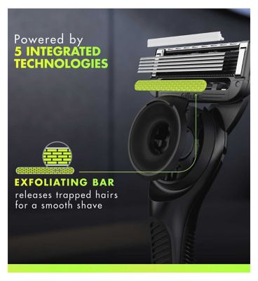 • Features 5 of Gillette's high-performance blades for an efficient shave.