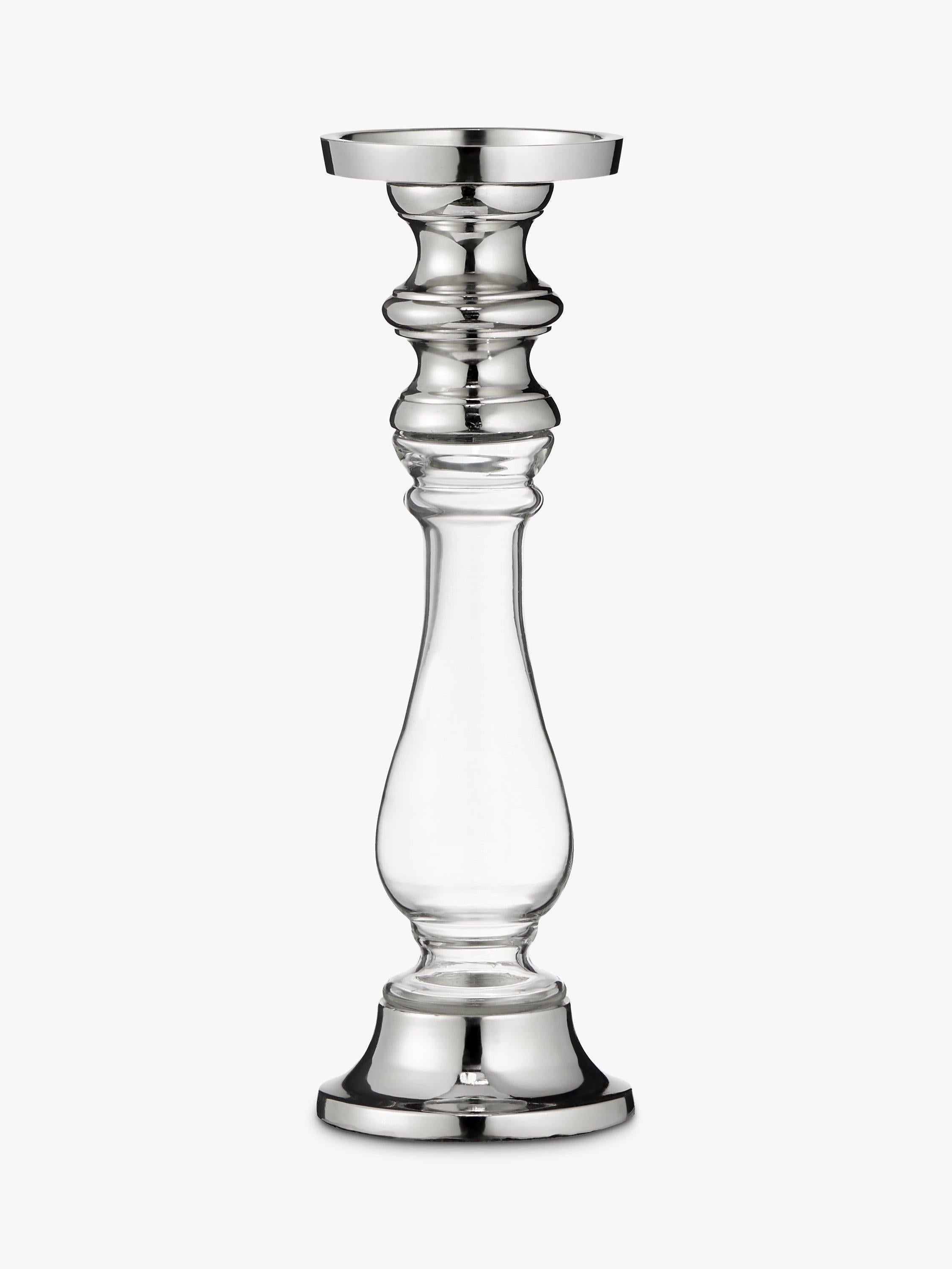 This John Lewis & Partners Pillar Candle Holder provides elegant display space for your favourite pillar candles. Standing at 30cm tall, this substantial accessory expertly combines sturdy glass and aluminium materials beautifully. Its refined aesthetic complements any sophisticated interior design scheme perfectly, offering timeless appeal for your mantelpiece or table.