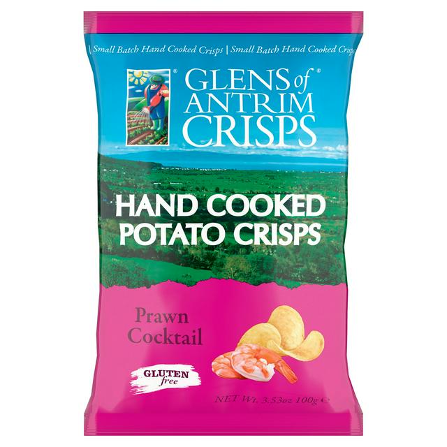 Product details Description Potato Crisps with Prawn Cocktail flavour. Small batch hand cooked crisps Prawn cocktail Gluten free GMO free No artificial colours or artificial flavours Vegetarian friendly The glens of Antrim are full of myth and legend, this is where we make the perfect crisp. On the side of... Read More