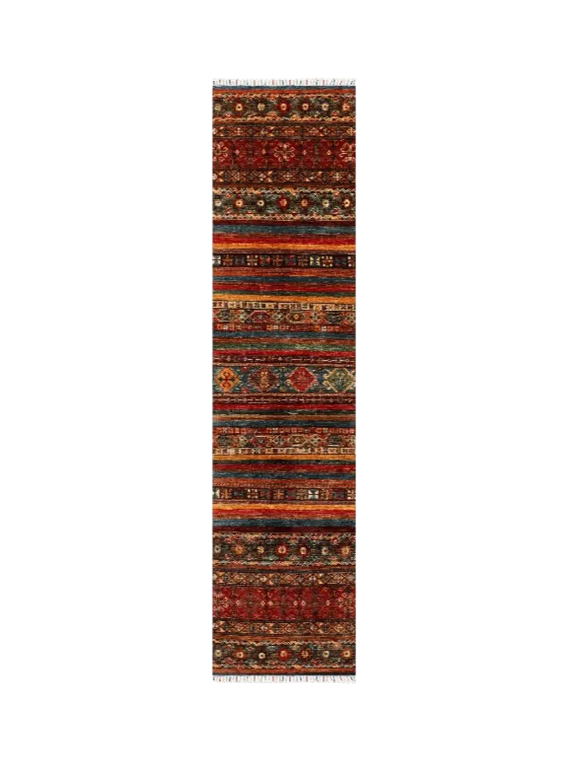 Khurjeen rugs are woven by Turkmen and Hazara tribes in the central and Northern provinces of Afghanistan. The design and patterns of Khurjeen rugs are taken from Saddle bags having different warm colours and straight strips too. Khujeen rugs are unique because of their pattern and delicate designs specially mixing contemporary and traditional designs together.
