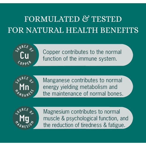 - Source of Manganese: Contributes to normal energy-yielding metabolism.