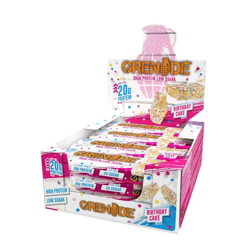 Enjoy the taste of celebration daily with the Grenade Birthday Cake Protein Bar. This snack captures the classic flavour of vanilla sponge cake within a satisfying, triple-layered structure, all coated in white chocolate.