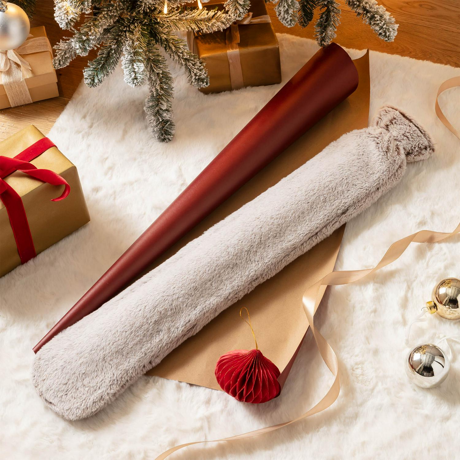 In a white faux fur cover with an elasticated neck, our luxe extra-long 2.2L hot water bottle is a game-changer for keeping cosy. Designed for full body warmth, you can curl around it, lay on it or drape it over you. The aim, to help relax muscles for a good night's sleep. A creative and much-appreciated gift idea.