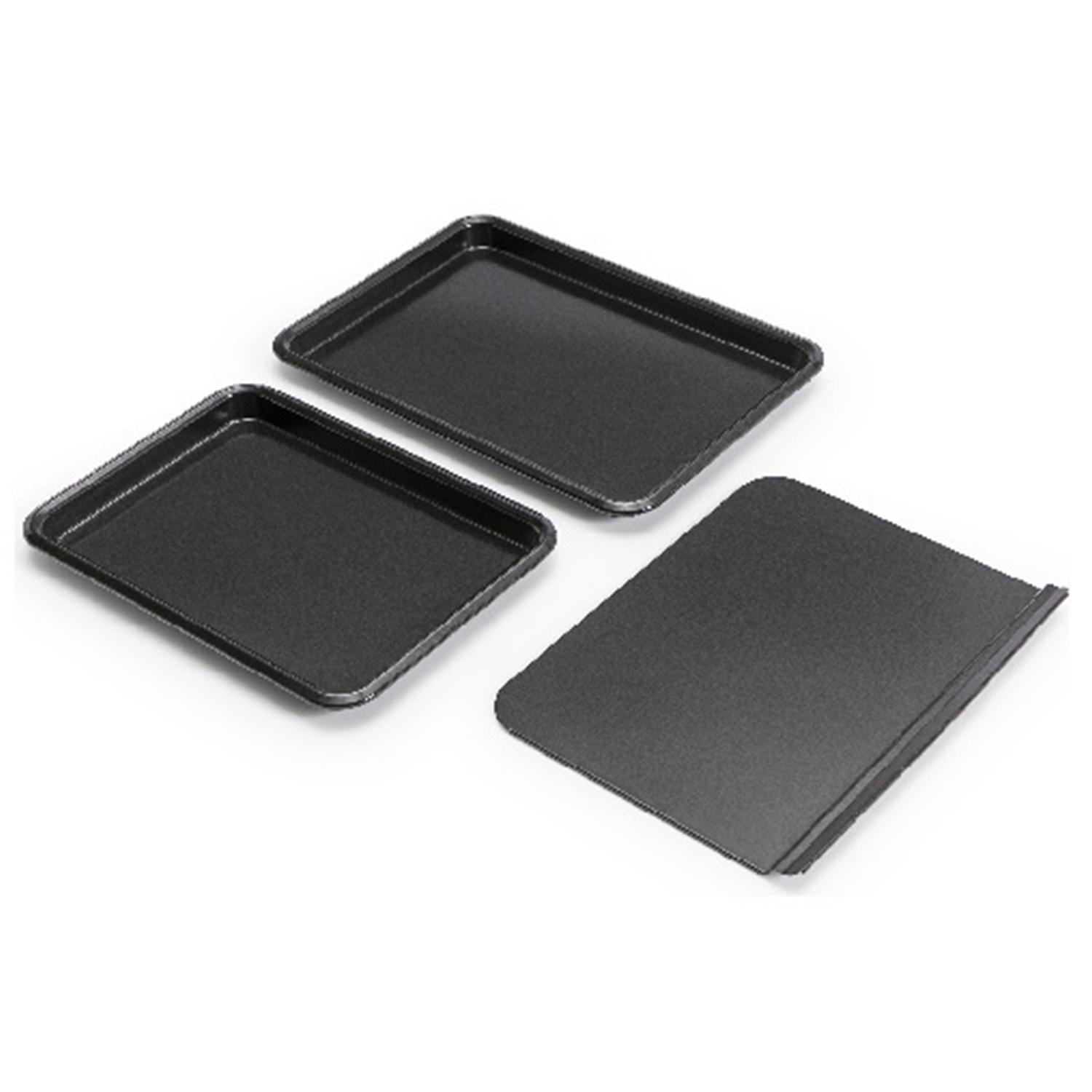 Read MoreWhether you're baking up a gooey batch of cookies or crispy, crunchy roast potatoes, this set of three, 2-ply heavy-gauge oven trays provide perfect results. They have non-stick coatings, so you won't have to wrestle your dinner off them. What's more, they can withstand the daily wear and tear of metal utensils.