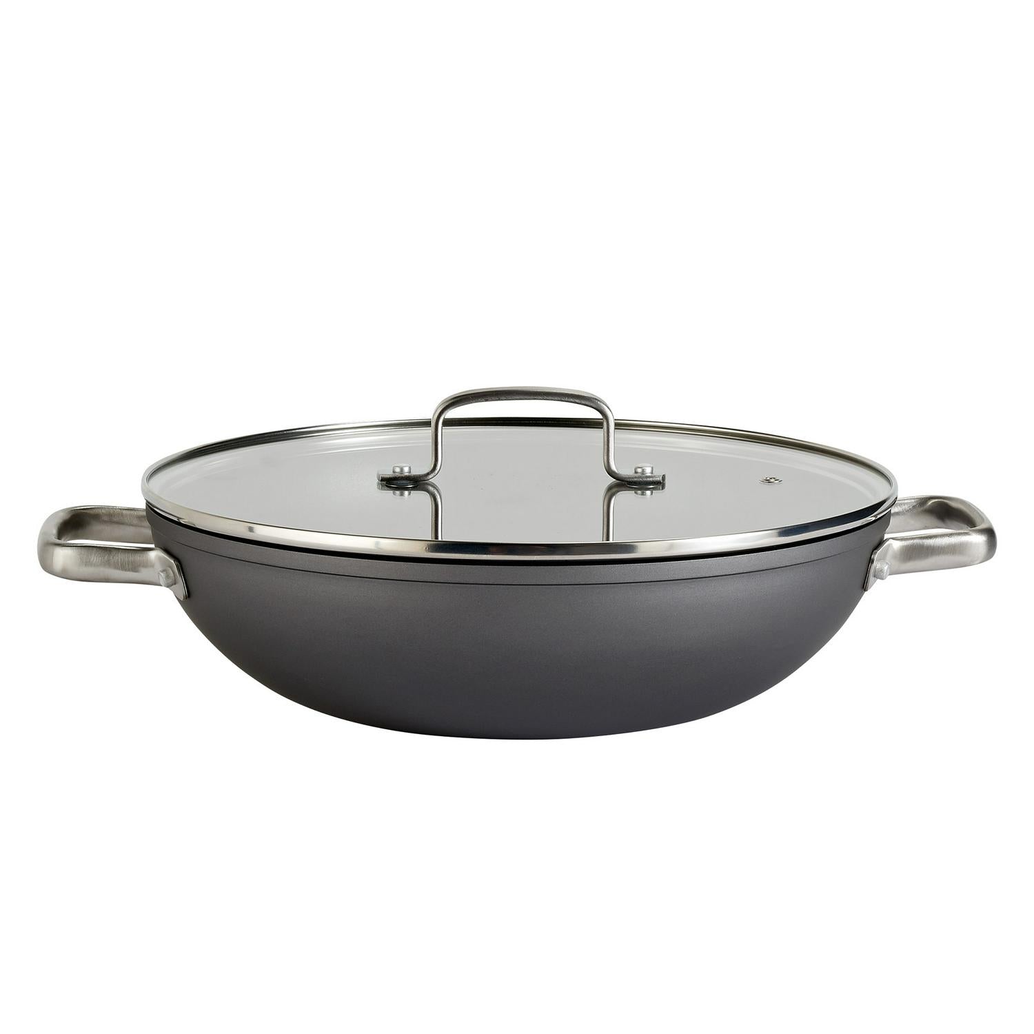 This 30cm wok is ideal for stir-fries or cooking large batches, featuring a robust construction for consistent results. It is crafted from hard anodised aluminium and stainless steel components for durability.
