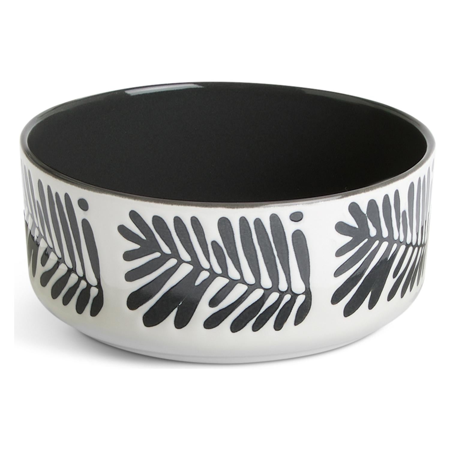 This Habitat cereal bowl features a thoroughly modern monochrome finish with a bold, stylistic leaf pattern. Its design takes inspiration from contemporary Scandi aesthetics, making it a stunning addition to any table setting. Crafted from durable stoneware, this piece balances visual impact with practical everyday use.