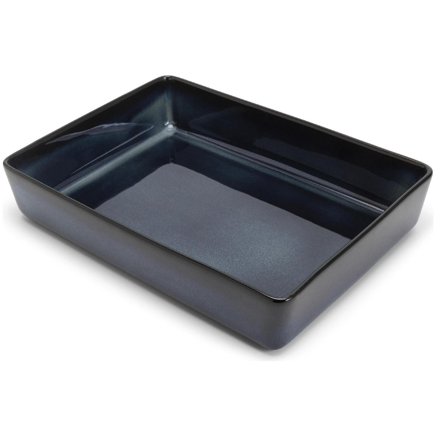 This Habitat stoneware roaster features a reactive navy glaze, offering both aesthetic appeal and practical performance for baking. Its deep design is ideal for handling larger meals, complementing any kitchenware collection. The sturdy stoneware construction ensures excellent results straight from the oven.