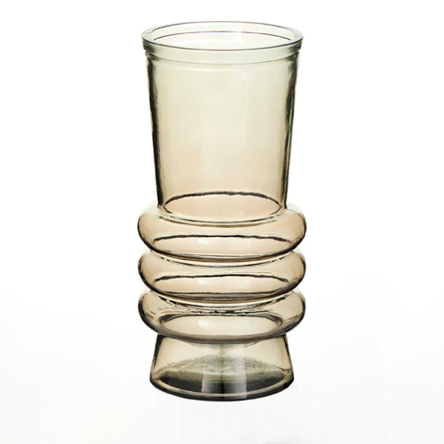Read MoreWith rounded ridge details and a wide mouth, this striking vase will easily showcase your favorite flowers. And with its sculptural style and tinted glass it looks good, even when empty. Crafted from 100% post-consumer recycled glass.