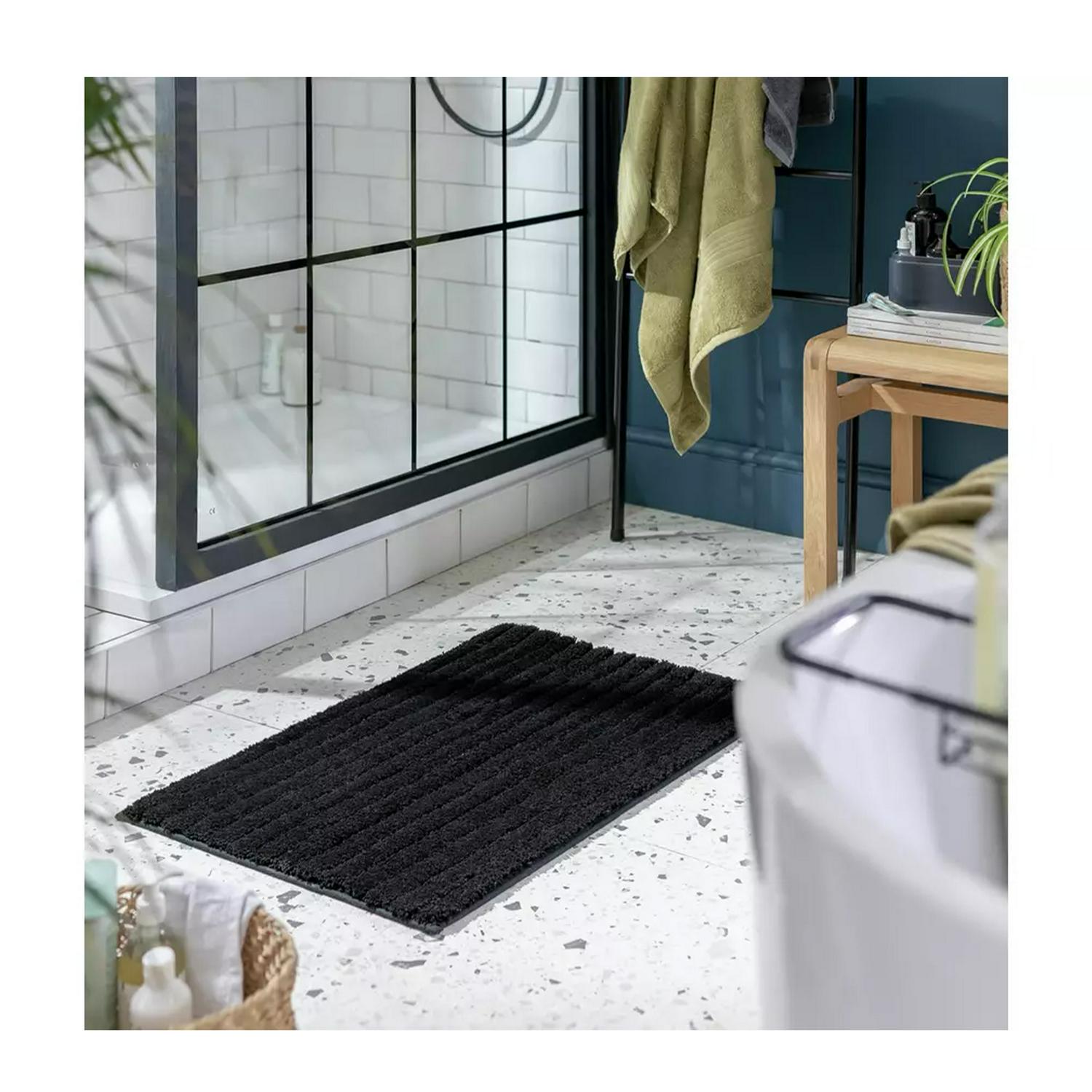 Step out onto softness after every shower with this Habitat ribbed black bath mat. Constructed using 100% polypropylene microfibers, this mat provides a luxuriously soft and deep pile feel underfoot. Its practical design focuses on comfort and essential safety features for your bathroom floor.