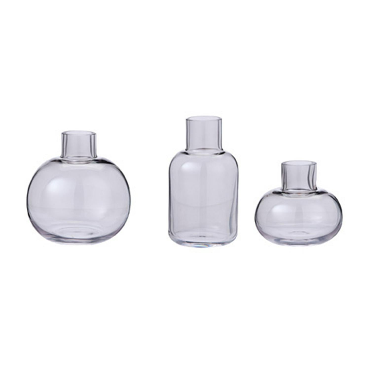 This stylish set of three bud vases features smooth, shapely contours ideal for highlighting individual blooms. Crafted from contemporary smoked glass, these vases look excellent when displayed together as a collection. They are made from durable soda lime glass, offering a sophisticated aesthetic for any surface.
