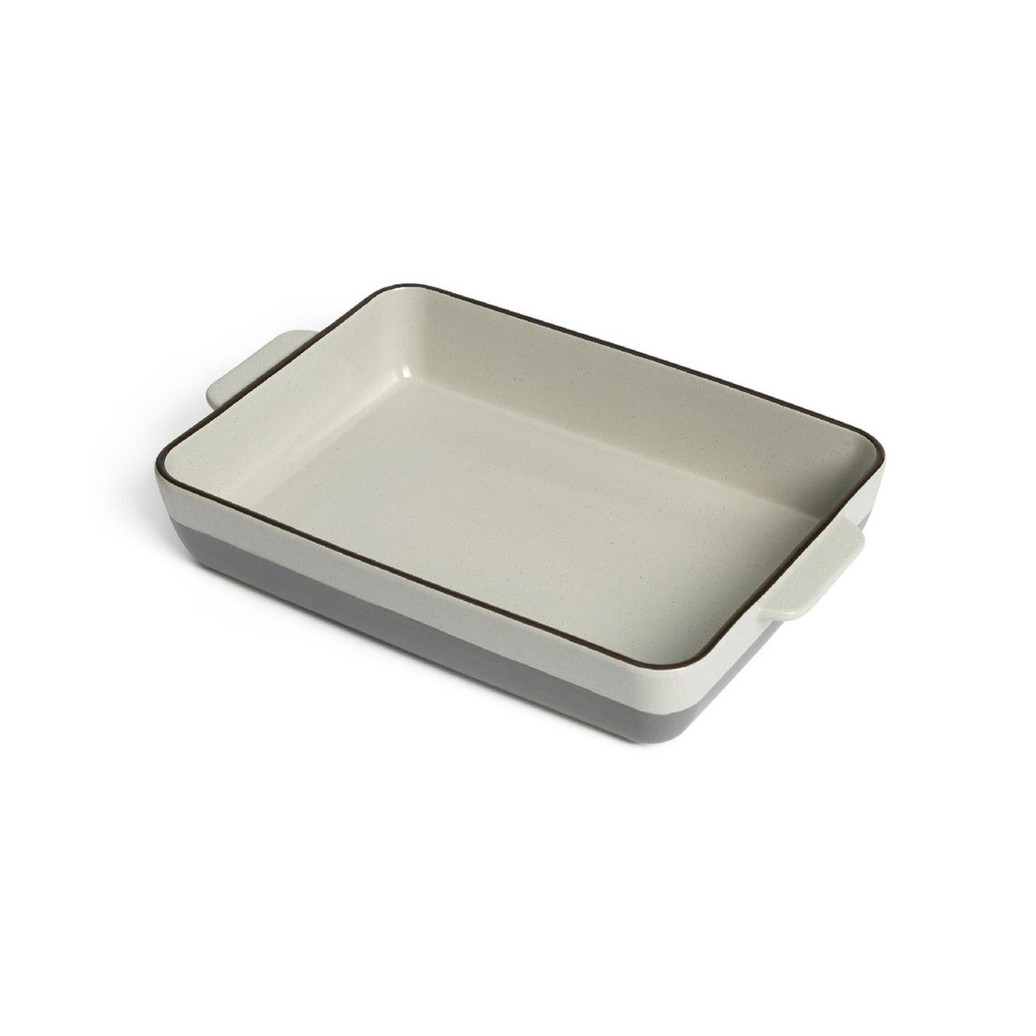 This rectangular Habitat ceramic roasting dish is designed to help you achieve crispy, mouth-watering results with meats and potatoes. It features an attractive tone-on-tone design, complete with a rustic rim and a smart speckle finish for visual appeal. The robust ceramic construction ensures this versatile piece of cookware handles various temperatures effectively.