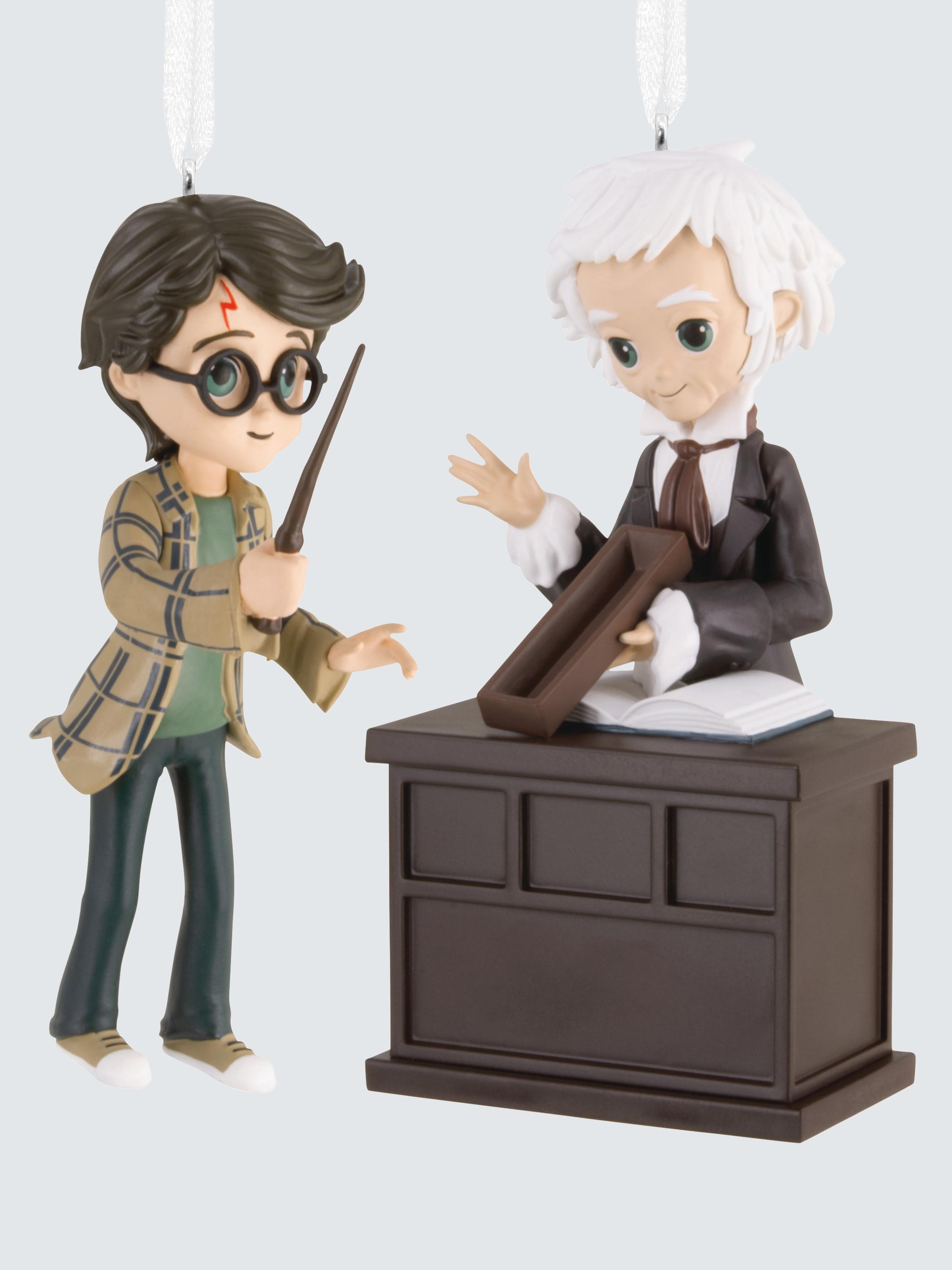Add a magical touch to your home and let the wand choose with these hanging decorations featuring Harry Potter™ and Ollivander. This Storied Moment collectible features a set of two ornaments depicting Ollivander and Harry Potter™ as he procures his new wand.