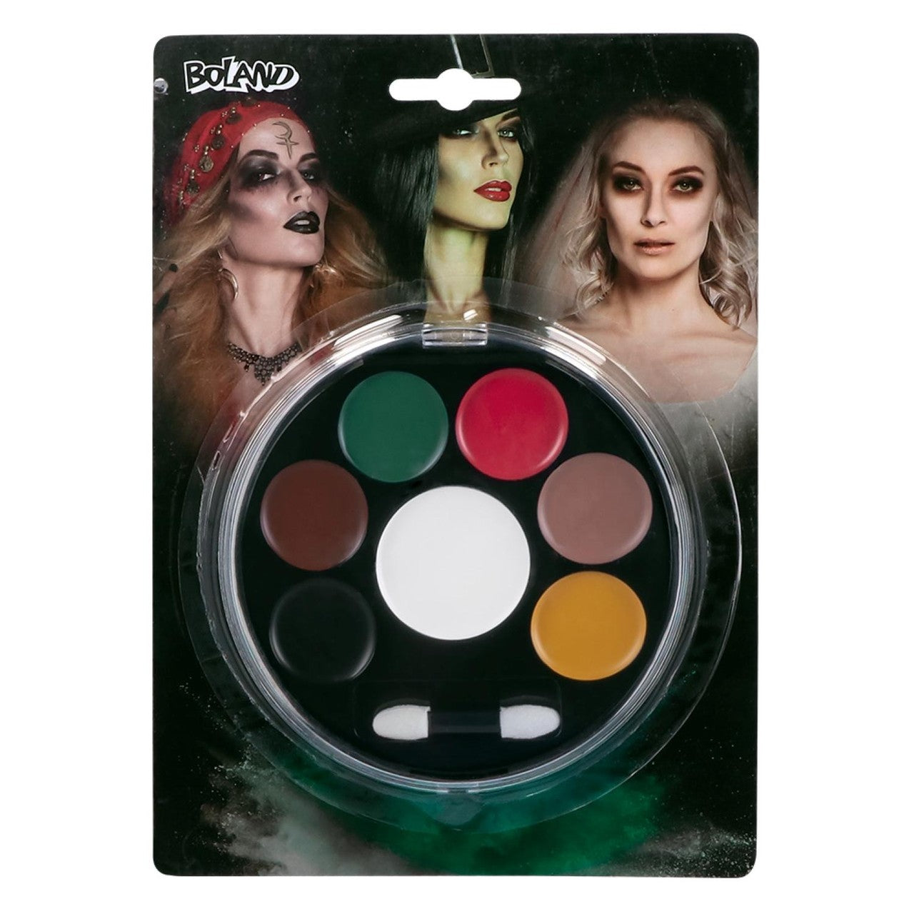 This palette provides seven distinct, super colours, ideal for crafting intricate and horrifying Halloween makeup looks this season. It contains essential base components like Paraffinum Liquidum and Petrolatum to aid smooth application across the skin surface. Use this versatile selection to create memorable costume transformations and bold visual statements for your event.