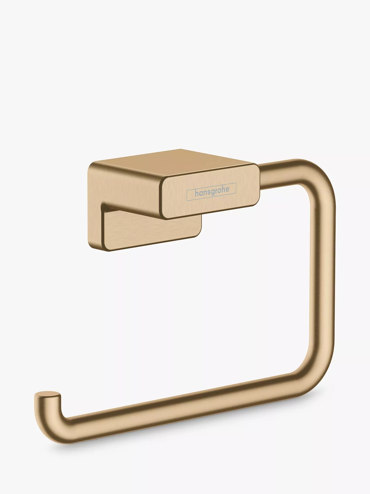 A stylish AddStoris wall-mounted toilet roll holder, adding visual and functional flair to a bathroom or WC. This modern and minimalist design is from Hansgrohe.