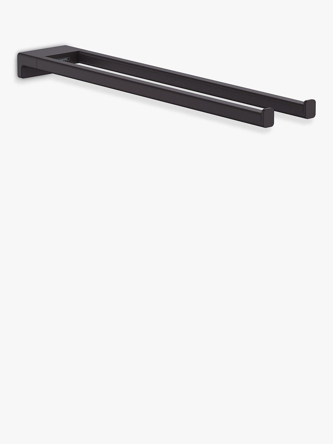 Hansgrohe Addstoris Wall Mounted Twin Towel Rail offers a stylish, functional upgrade, presenting superior organisation for your bathroom essentials. This quality fixture safely suspends two standard towels, allowing for excellent air circulation which speeds up drying times significantly. The unit features sturdy construction and concealed fixings for a clean look.