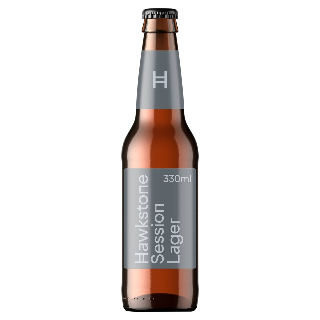 This Hawkstone offering presents a contemporary Session Lager packaged in a standard 330ml amber glass bottle. The clean, modern labelling reflects its positioning as an accessible yet quality brew. This style of lager is designed for enjoyable drinking over a longer period. Keep this bottle chilled to experience its intended flavour profile.