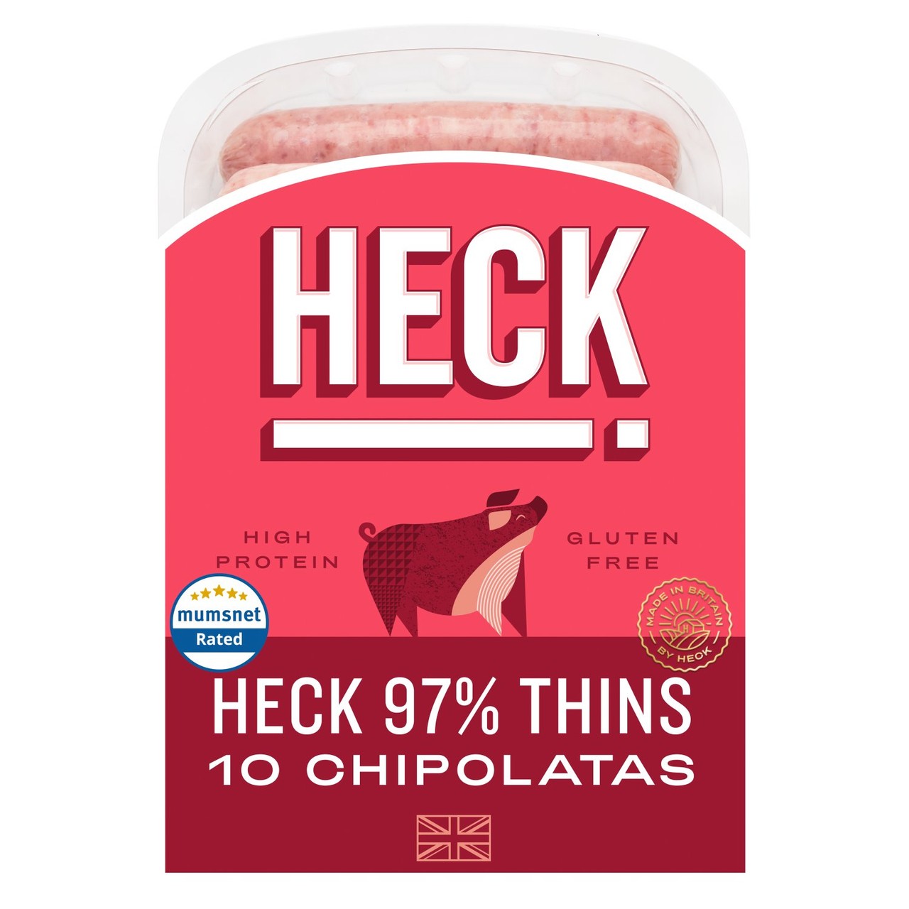 These HECK Thins Chipolatas are crafted using 97% lean British pork shoulder, offering a high-quality ingredient profile for your breakfast. They present full-on flavour in a convenient smaller format, making them a simple upgrade to your usual fry-up components.