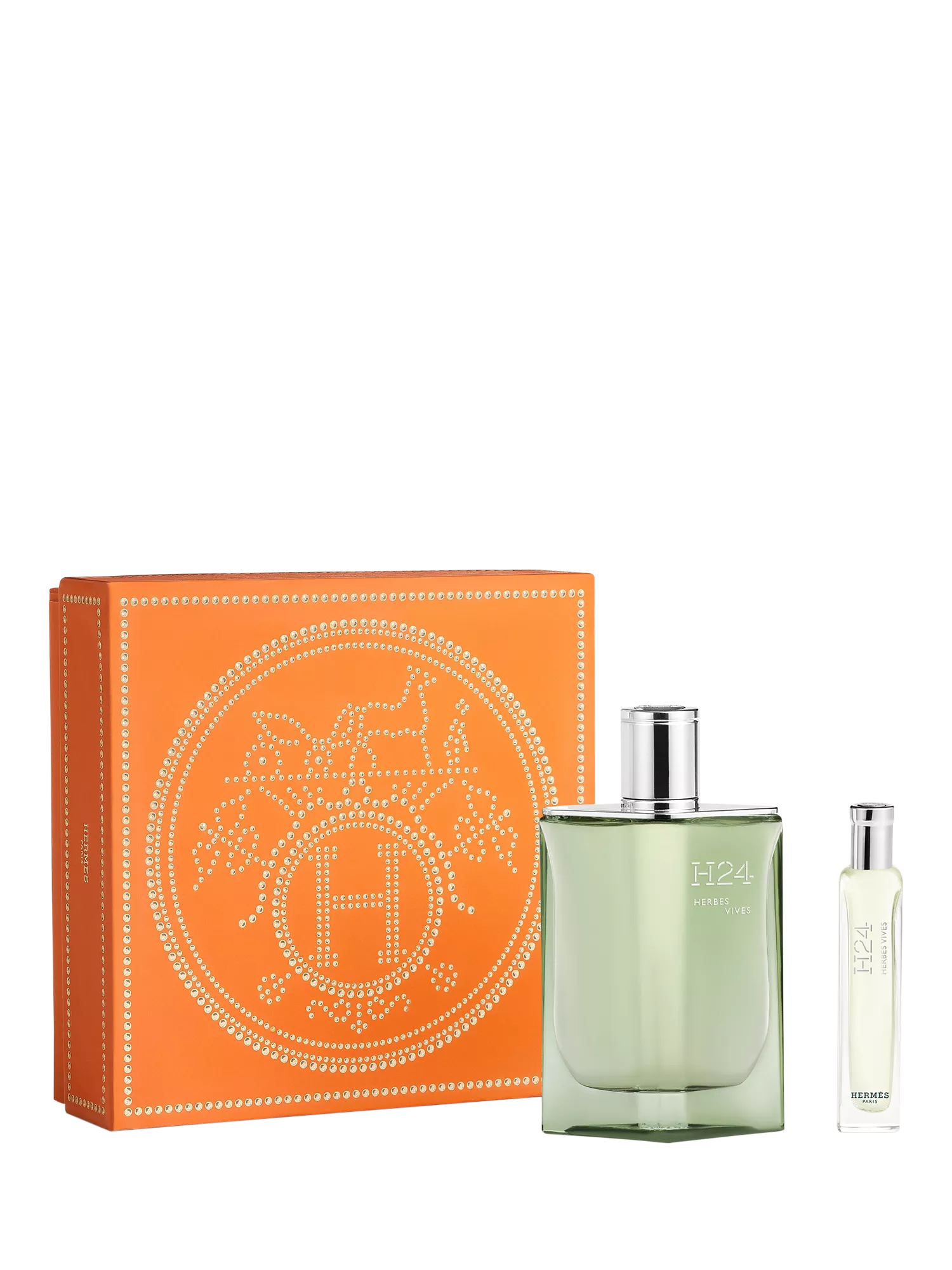 This gift set comprises one 100ml H24 Herbes Vives Eau de Parfum and one 15ml travel size H24 Herbes Vives Eau de Parfum.
