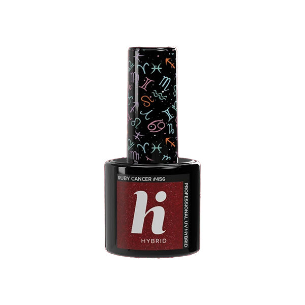 456 ruby cancer is a vivid shade of noble red with a beautiful particle shimmering in the summer sun it looks phenomenal both used solo on each nail and used as an element of decorations