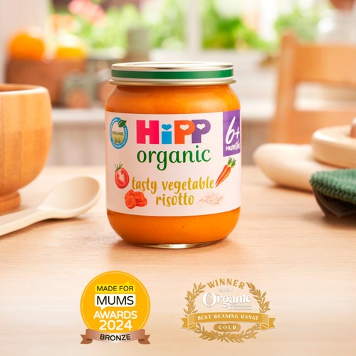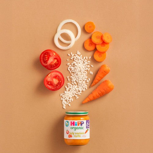 This creamy vegetable risotto from HiPP is designed as a comforting first meal for babies from six months old. It carefully blends simple, quality ingredients like tomatoes, carrots, and rice into a delicious texture suitable for early weaning.