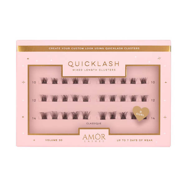 house of amor mixed length diy eyelash clusters classique classique a perfect inbetween style to transition from day to night whats included 1 pack of mixed length clusters featuring a total of 30 pre cut clusters 10 x 10mm 10 x 12mm 10 x 14mm