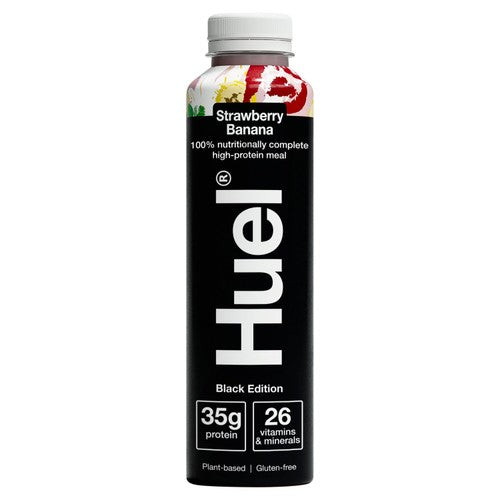 Huel Ready to Drink Black Edition offers fully balanced, nutritionally complete food in a convenient Strawberry Banana flavour bottle. This ready-to-drink format provides a substantial meal replacement designed to cover all daily needs efficiently.
