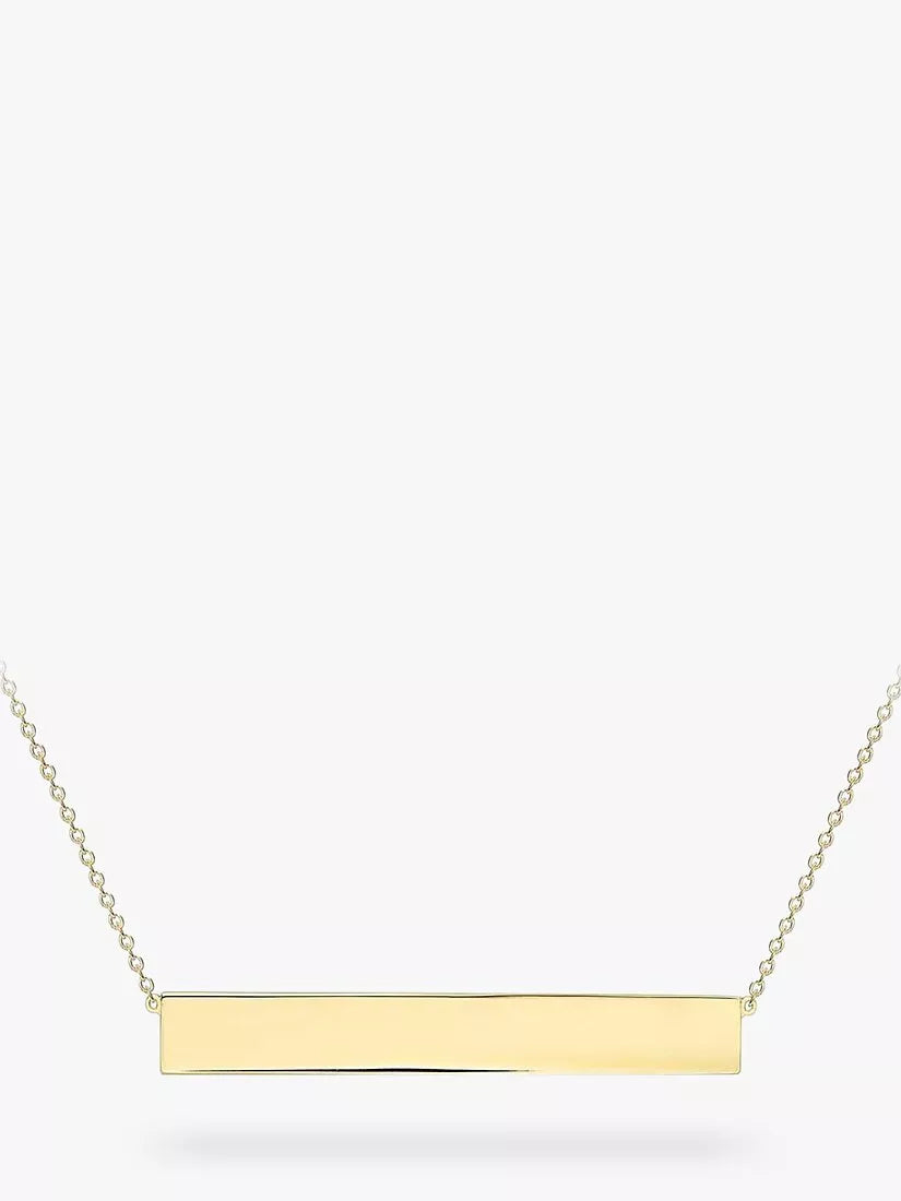 This IBB bar pendant necklace combines a pared-down design and precious metals. The slim bar can carry up to 12 characters, executed in a choice of fonts and delivering a very personal message.