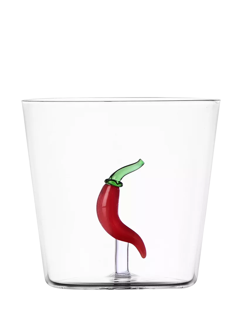 For this giftable design from the collection, a chili pepper takes centre stage, revealed inside a glass tumbler. Ideal soft drinks and cocktails.