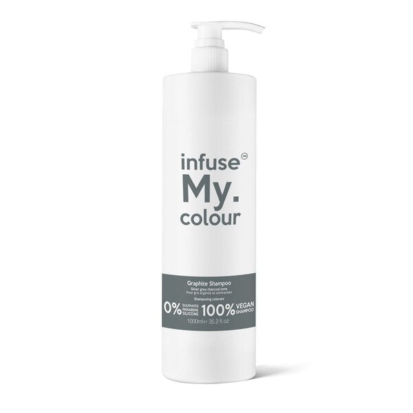 infuse my colour graphite shampoo adds a graphiteash tone to coloured dark brown hair and steel tones to coloured light brown hair for bleached hair infuse my colour graphite shampoo adds striking charcoal effects and removes orange tones100 vegan formula 0 sulphates 0 silicones 0 parabens apply a generous quantity of infuse my colour shampoo around double the quantity you would use of regular shampoo evenly rinse and repeat the shampoo procedure and follow with infuse my colour treat conditioner to comb through and rinse infuse my colour products have instant results so you can style your hair as normal once washed
