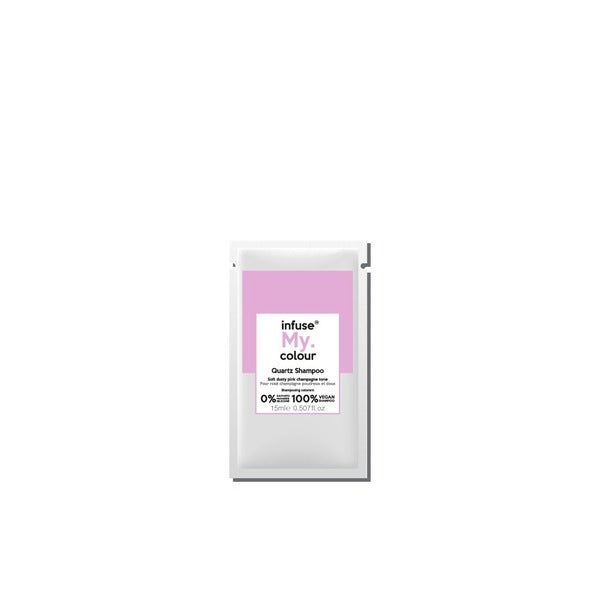 perfect for those looking to change up their hair for summer but arent ready to commit to a permanent colour change yet infuse my colour quartz shampoo creates soft dusty pink tones on bleached hair and for light brown hair it will add a soft subtle rosy pink hue 100 vegan formula 0 sulphates 0 silicones 0 parabens apply a generous quantity of infuse my colour shampoo around double the quantity you would use of regular shampoo evenly rinse and repeat the shampoo procedure and follow with infuse my colour treat conditioner to comb through and rinse infuse my colour products have instant results so you can style your hair as normal once washed